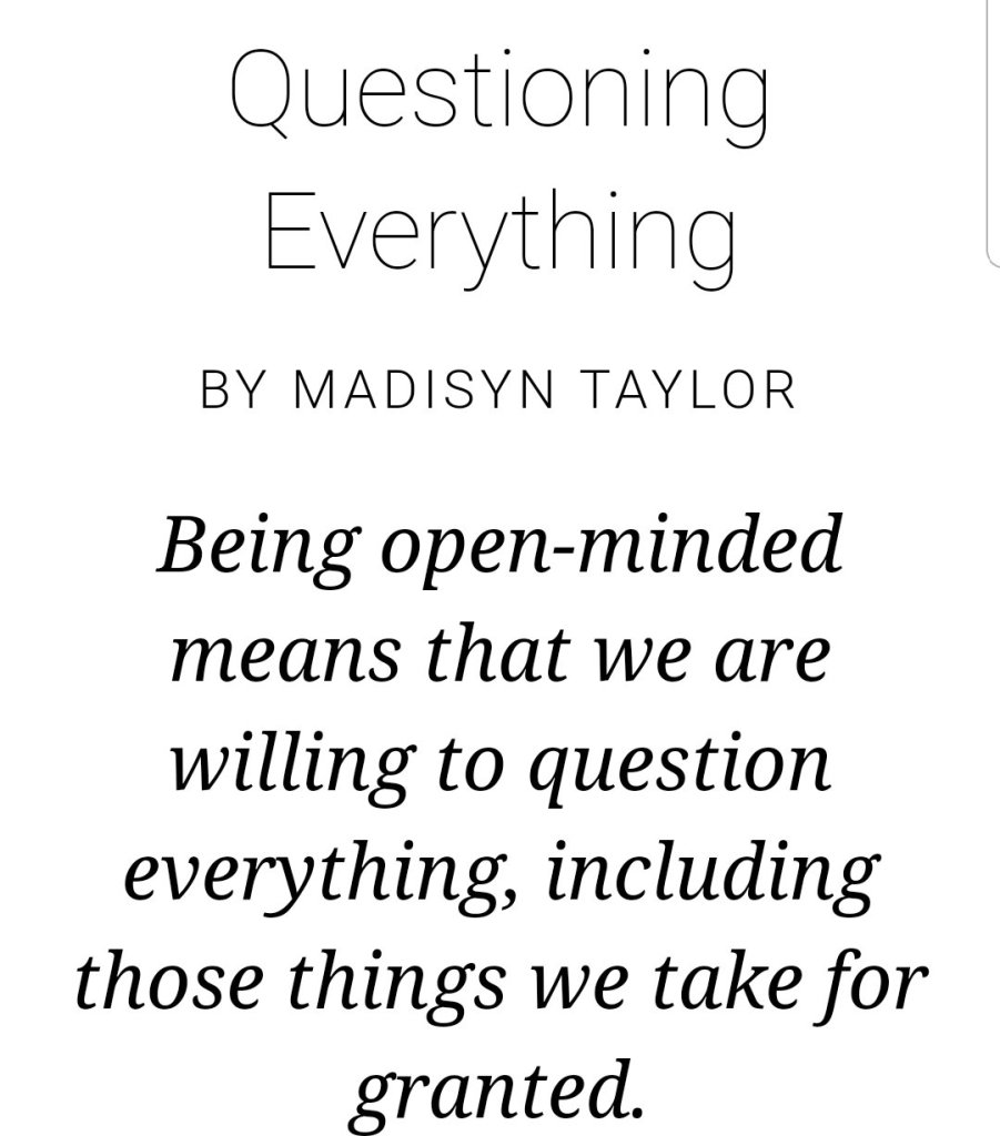 You know how kids are always asking questions? Those dreaded “whyyy?” (Repeat x1000). My 2 year old niece asked me what slow motion meant and I was blown away. When did we lose this? Since when do we know everything there is to know about the universe? Why are we no longer inquisitive? How do we have 20/20 vision if we don’t humble ourselves and say we don’t know. Our vision has blind spots. Personally if I hear about a new concept, ideology etc I immediately google it and watch YouTube videos on the topic.