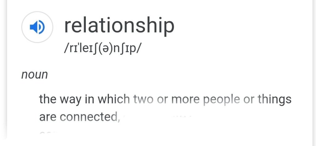 A relationship is not just between a husband and wife or people dating. It’s a connection. They come in many forms like, family, friends, colleagues, marriages and the list goes on. Dictionary.com defines it as follows: