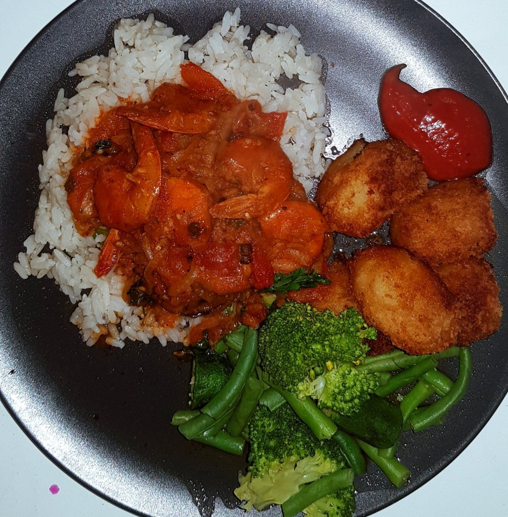On the menu was a Prawn Curry with Rice and steamed Broccoli, Marrow and Green Bean Medley with Potato Rostis. Mmmm. Sounded good. I told people that I would tell them how it went. If I didn’t tell them how it went well then they should know it obviously didn’t go well! Supper arrived with pomp and ceremony. Hubs was beaming as he nervously produced the food. It looked good. I snapped some pics. He stood and looked at me. “What?” I said. “I want to know what you think” he replied. “It’s too hot to eat yet!” I said. Poor guy was so eager…. he stayed. Waited for it to cool down and for me to take the first bite. To his delight I loved it. It was honestly really good. I was preparing myself for possible faking. We had an incident years ago when I had my appendix out. I wasn’t allowed to eat solid food. One day he gave me mashed sugar with pumpkin. Yes, you read that right. Thats what the ratio tasted like. I smiled and ate it, developing an instant headache and worrying about diabetes. Put me off pumpkin for a loooong time.