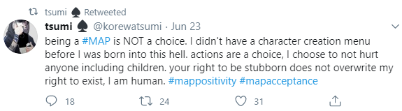 So we have MAPS, as explained above. They are on a massive campaign to get validation, to be accepted. Some openly say that they are Pro-Contact and others are not. How brazen though are you though to say that you Pro-Contact. You’re a damn paedophile not a MAP!