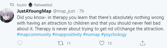 Then you get Pro-contact MAPS. MAPS that are out there saying it’s okay to have a sexual relationship with a child. One of these fools actually said “Children do know what they want and like. I mean they know what ice-cream flavour they want.” Are you flipping kidding me? I’m trying to hold back on the very rude words I want to use here. Now you have MAP allies! People who actually support them. In researching this, I had to go through Twitter and Instagram accounts that made me so damn sick. It completely freaked me out. It’s damn disgusting and they are sick and deluded.
